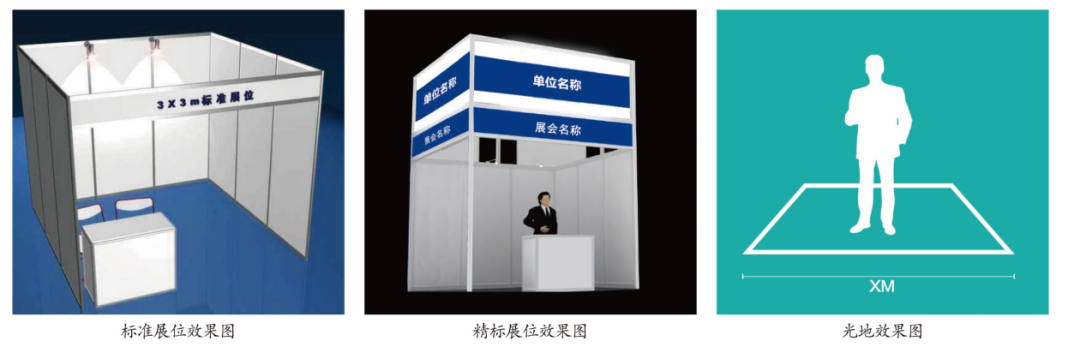 | 特装展示区36㎡起 | 精标展位3×3m | 标准展位3×3m |