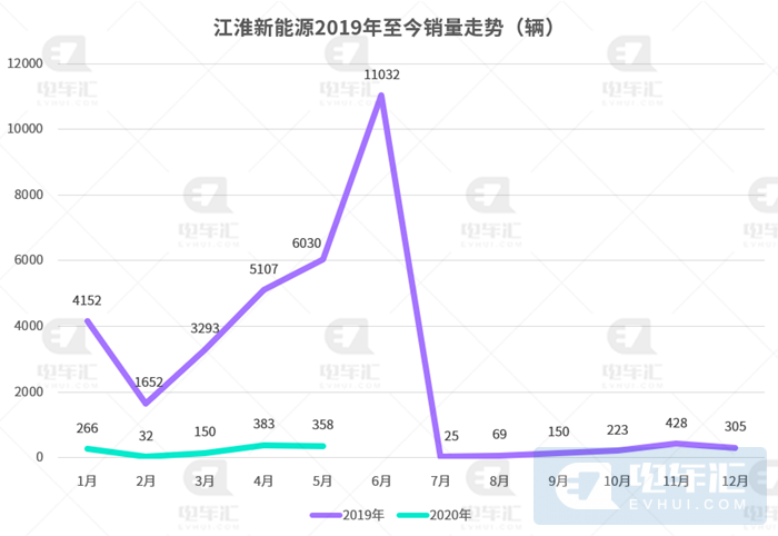 不过现阶段江淮新能源自主品牌车型与江淮大众合资品牌思皓的销量都不太理想,电车汇依据终端零售数据统计显示,思皓自2019年初至今的销量仅有1325辆,而江淮新能源自2019年6月份之后销量逐月下滑,今年前五个月累计销量仅有1189辆,已经远远落后于其他品牌车型。